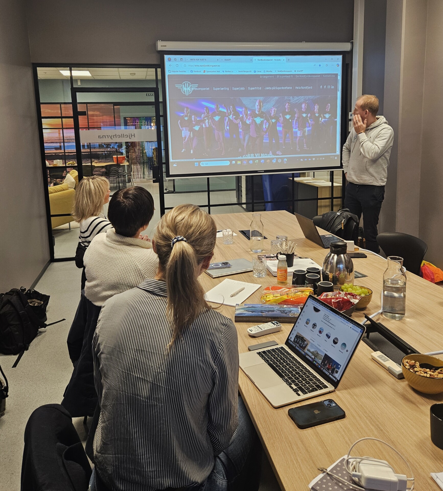Hópurinn fékk einnig innsýn í starfsemi Nordfjordkompaniet, sem vinnur markvisst að því að fræða ungt fólk um tækifærin í heimabyggð. Kynningar og vettvangsferðir veittu innsýn í það hvernig Nordfjordkompaniet, fyrirtæki á svæðinu og öll skólastig vinna saman að því að auka þekkingu ungmenna á samfélagi sínu. Þessi þekking og innblástur mun nýtast sérstaklega vel fyrir áframhaldandi þróun á verkefni okkar HeimaHöfn.